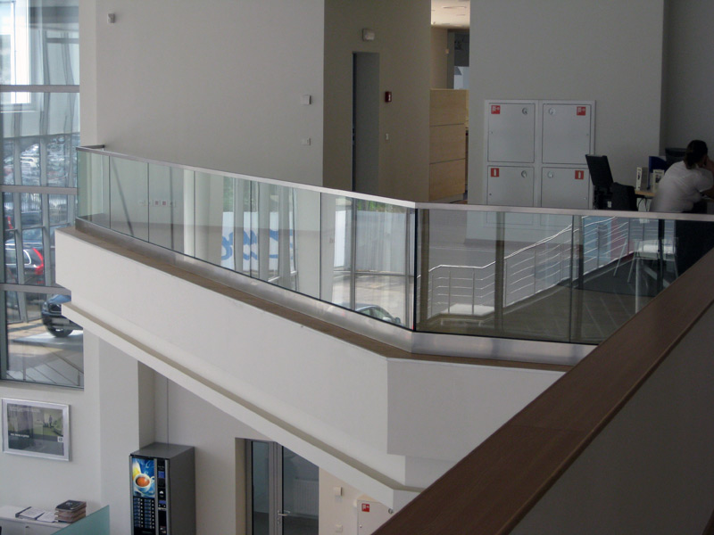 Заполнение - безопасное прозрачное, цветное, матовое стекло «Триплекс» толщиной 17мм. Профиль - нержавеющая сталь марки AISI201 или AISI304 (при монтаже конструкций на улице).