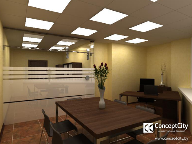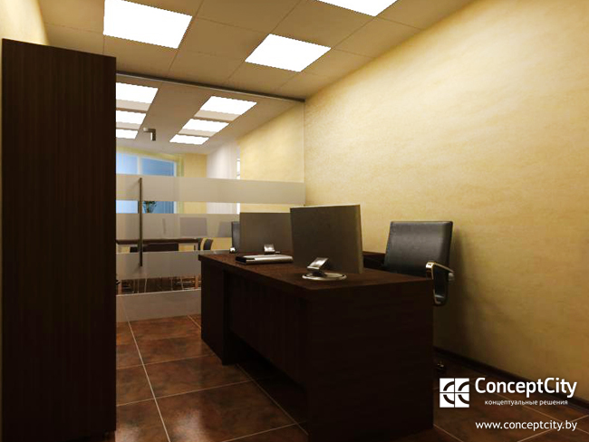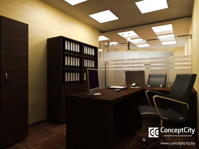 Для инвестиционной компании был разработан дизайн проект, который отражает возможности помещения, в результате проведенной проектной работы нашей компанией было оснащено офисное пространство по зонам: кабинет для руководителя, переговорная, кабинет для бухгалтера и помощника.Деление на зоны между кабинетами было достигнуто путем установки цельностеклянной перегородки, при этом откатная дверь в перегородку была установлена неслучайно, она позволила сэкономить полезную площадь и расширить проход. Учитывая специфику деятельности компании, была разработана и поставлена офисная мебель индивидуального производства светлого оттенка цвета“дуб palermo”из пластика польского производителя, прекрасно сочетающегося с алюминиевыми подстольями и фурнитурой, присутствующие в элементах перегородок и мебельной фурнитуры. Для максимального комфорта сотрудников и посетителей, при многочасовой работе и порой длительном процессе проведения переговоров, были поставлены офисные мягкие кресла из eco-кожи черного цвета итальянского производителя. Весь процесс от момента создания дизайн-концепции до ее воплощения составил три недели, что позволило клиенту оперативно въехать в новый офис и продолжить свою деятельность.